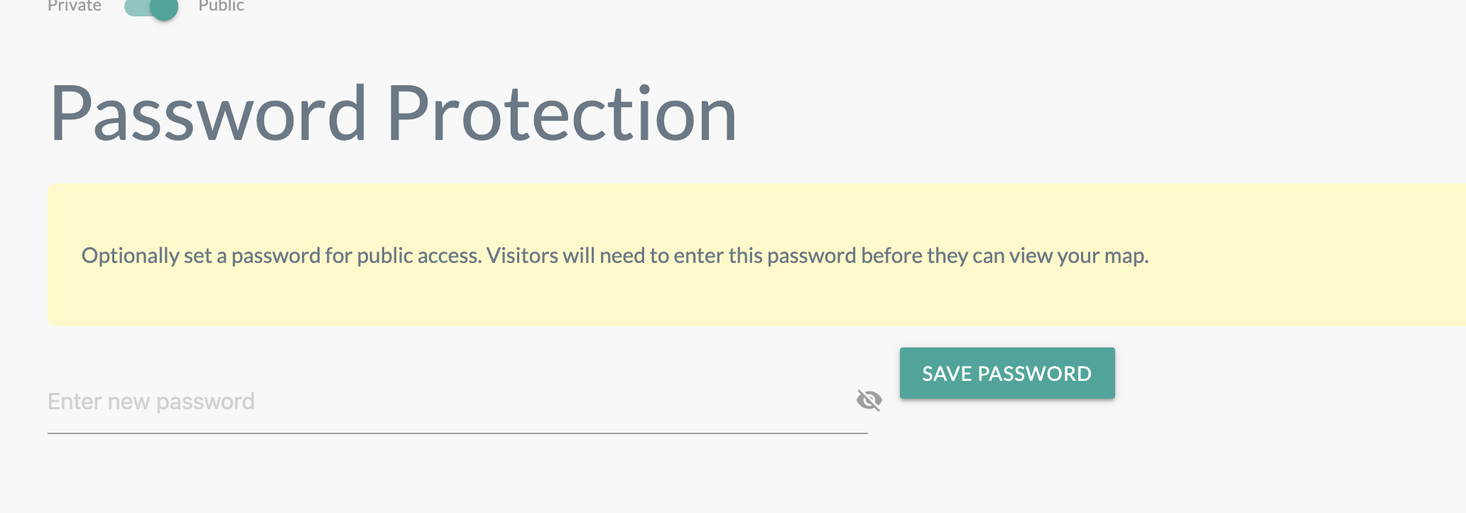 After publishing your map, you can choose to protect your map using a password. Visitors will need to enter this password before they can view your map.